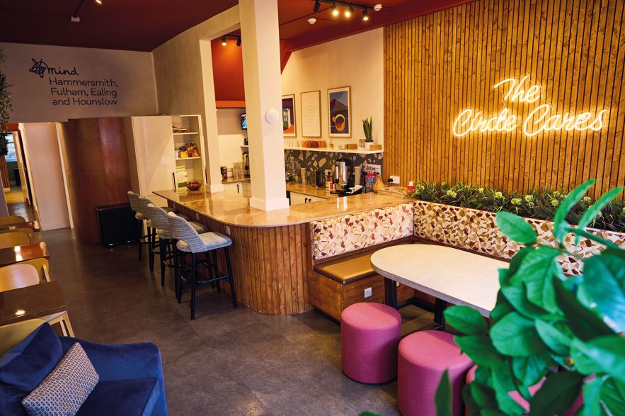 “We’ve seen a big increase in children and young people going to A&E with mental health problems in the last 10 years – but for many of them, A&E isn’t the right place. They don’t require hospital treatment; they need support from trained mental health practitioners to de-escalate in that moment of crisis or distress, and this is where Circle comes in.” With young people facing the very real prospect of falling through the gaps in the face of a stretched NHS system, Nana saw the opportunity to innovate. “We wanted to provide a service where young people were not overwhelmed by bright lights and felt comfortable to talk about their problems in safe a place,” she adds. “They can be retraumatised waitinglong hours in A&E. A lot of young people that present there don’t actually need emergency support. There are other settings that would be better. But the hub has not just been set up as a café. The main goal is crisis prevention, providing a young person with a place to go in their community for help. Meg adds: “It is somewhere that is psychologically safe and where young people are comfortable.” Another exciting aspect in the design of the café was collaboration with young people themselves, providing them with a say in what the establishment would look like. “We worked with them directly,” says Meg. “We had a young people’s board from Hammersmith and Fulham MIND but we also worked really closely with Young Ealing Foundation, who collaborated with interior designer Heartwell Interiors.