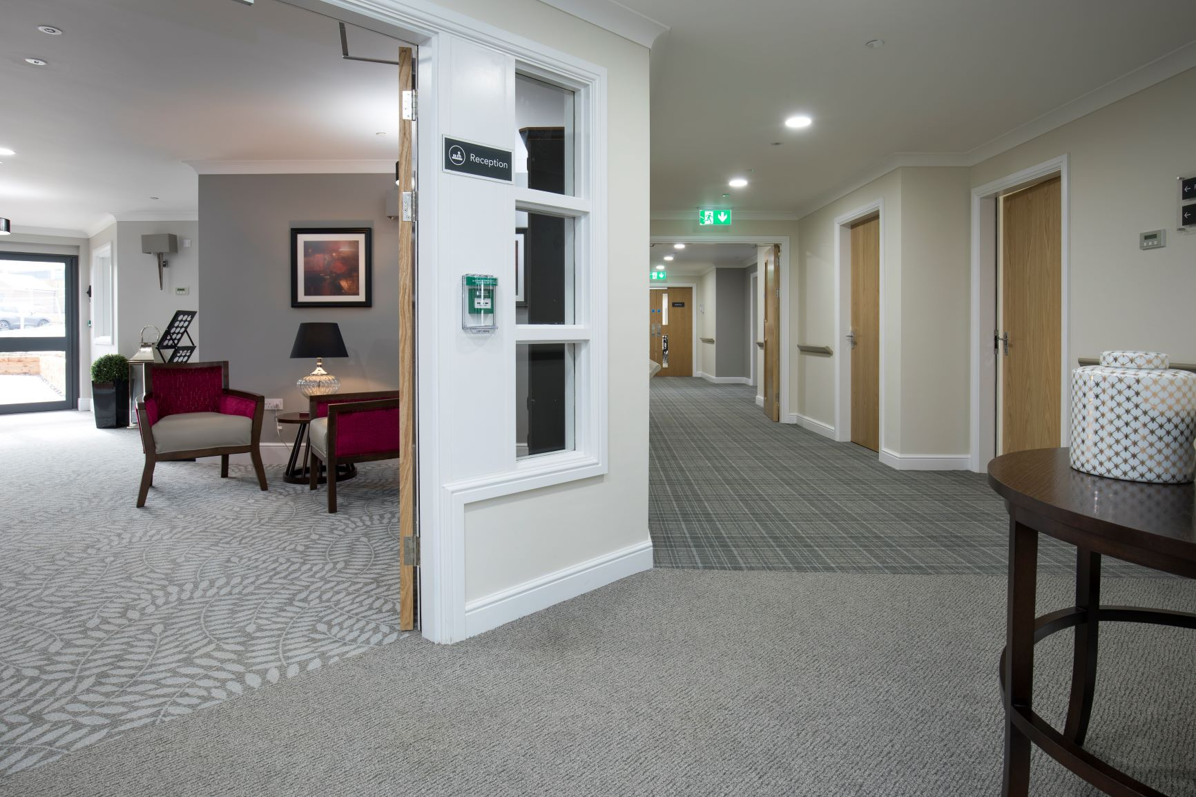 Carpet plays a key role in the interior design of a care environment. Carpets have many therapeutic benefits and have actually been proven to be quicker and less expensive to clean than hard flooring options.