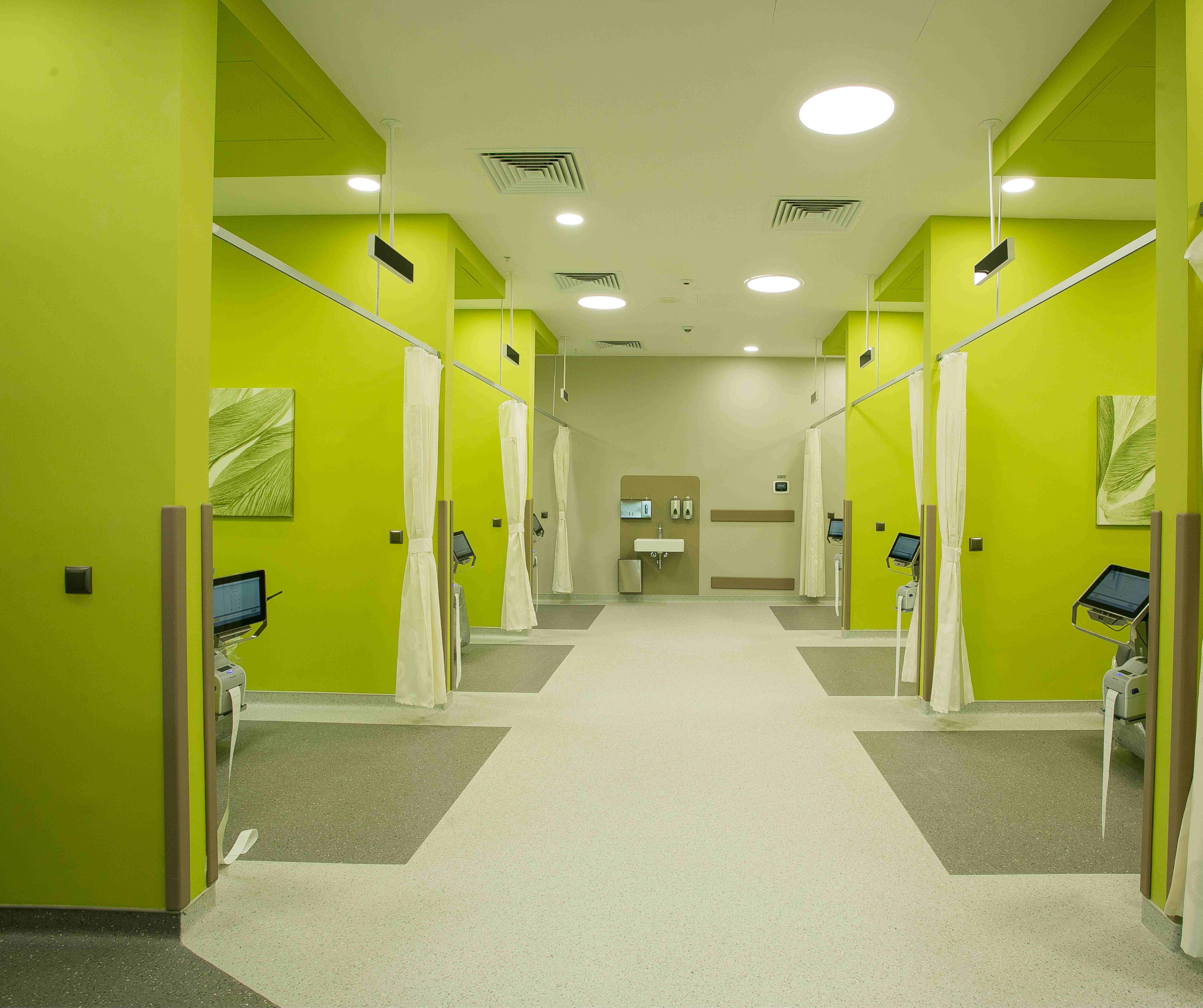 The coloured harmony of a space enables patients, staff and visitors to be immersed into an atmosphere conducive to their well-being, whether they seek privacy, stimulation or conviviality. The choice and positioning of colours on walls, floors, ceilings and furniture can focus the user’s gaze on a specific point or conversely open the space to divert attention.