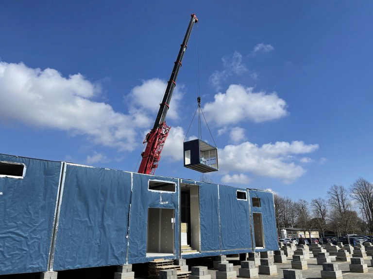 The facility consists of two mobile operating theatres and a connecting modular support hub, designed in collaboration with the hospital’s clinical teams.