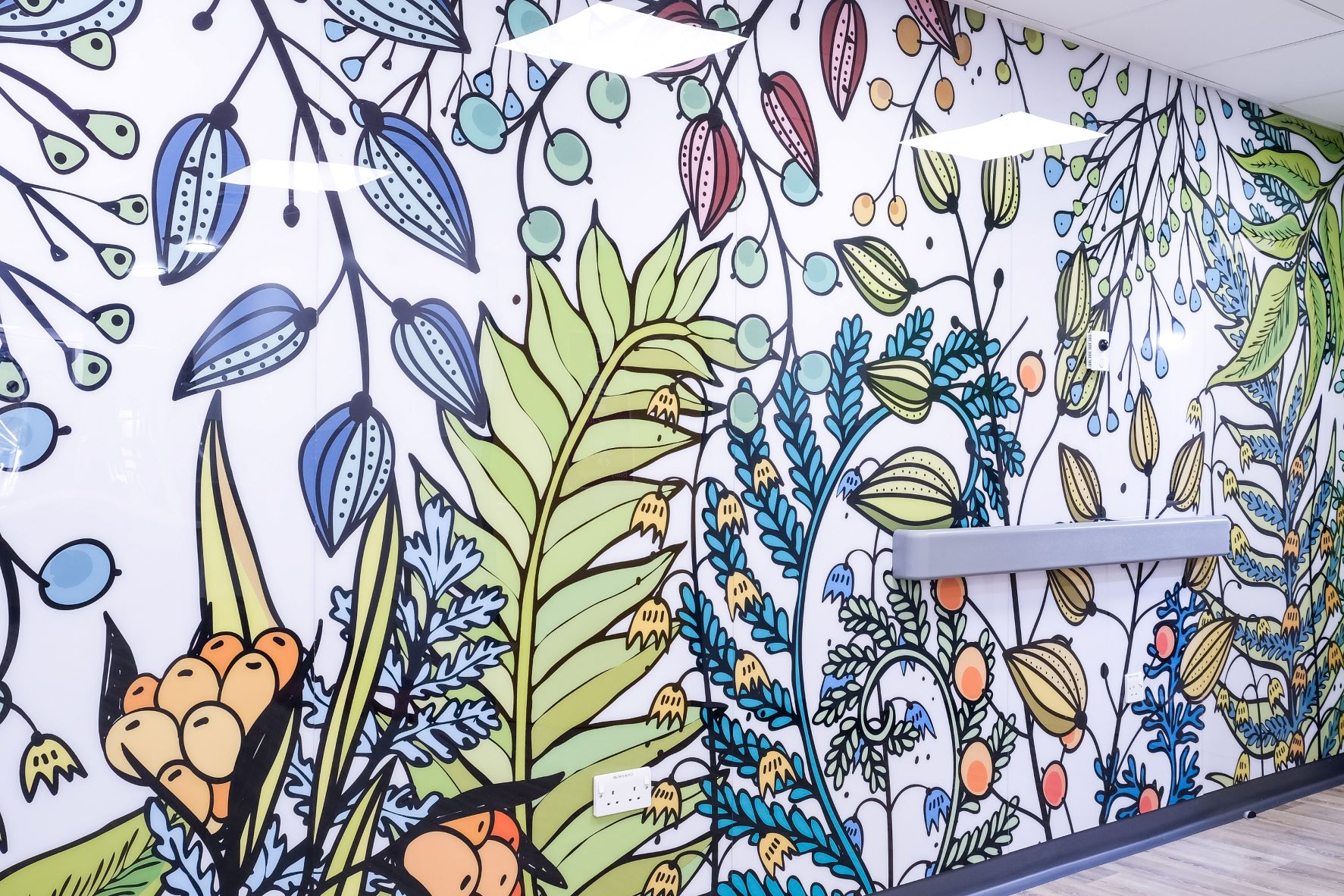 The reverse method of printing for the protection panels served to shield the decorative design from any impact damage with the smooth surface being conducive to thorough cleaning, maintaining high hygiene standards without detriment to the colourful images.